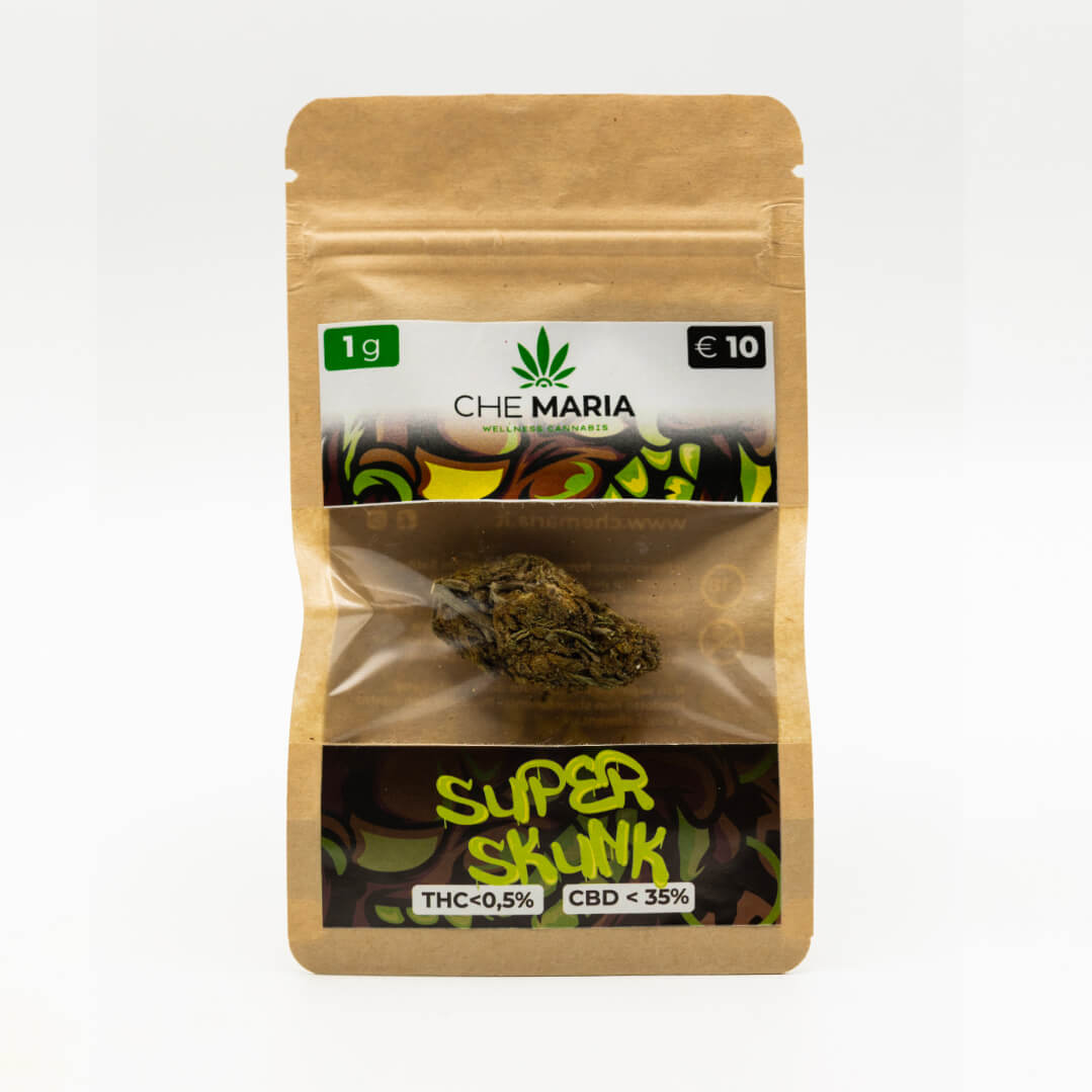 Cannabis Light Super Skunk, proviene solo dalla migliore inflorescenza da coltivazione indoor. Presenta una compatta resinatura unica nel suo genere, tipica di questo prodotto così speciale che viene apprezzata da tutti, onora sempre la sua reputazione di super vigorosa, super potente e super fragrante, unica nel suo genere.